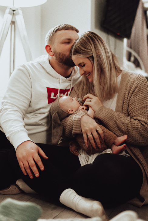 Ahhh newborns!! I absolutely loved my time photographing so many newborn babies over the years, and I was so so excited to meet Joseph and Brogan in their home to photograph some engagement photos with their baby Arthur. It was such a privilege to meet them both in person before their big day this year, but also get to meet their little one as she was only 17 weeks pregnant when we had our first zoom consultation! So I did something different from the typical engagement shoots I've been doing- I headed over to their home and took some gorgeous family photos.