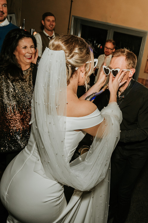 So, here's the scoop – it rained. No, scratch that, it poured. But hold up, before you start imagining a soggy disaster, let me tell you, this wasn't your average rainy day. It was like Mother Nature was in on the romantic plot twist, setting the scene with misty castle walls, vibrant greenery, and that fresh rain smell that hits you right in the feels. Now, you might think rain would put a damper on the party, but not this one. Inside Danby Castle, it was all systems go – laughter, clinking glasses, and the kind of dance moves that only a wedding playlist can inspire. The dance floor, decked out in fairy lights, turned into this epic stage for the couple and their crew to bust a move and create memories that even the rain couldn't wash away.
