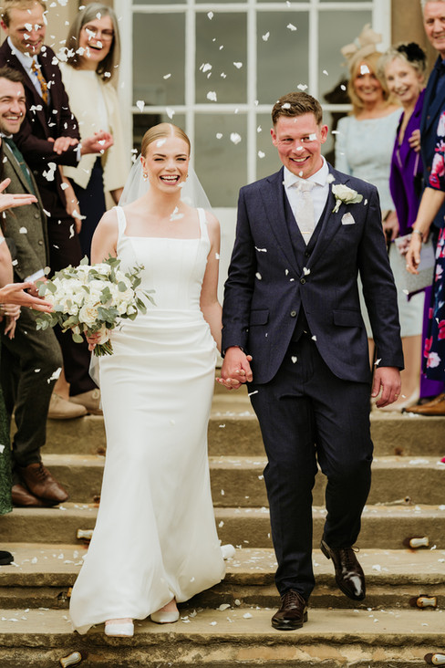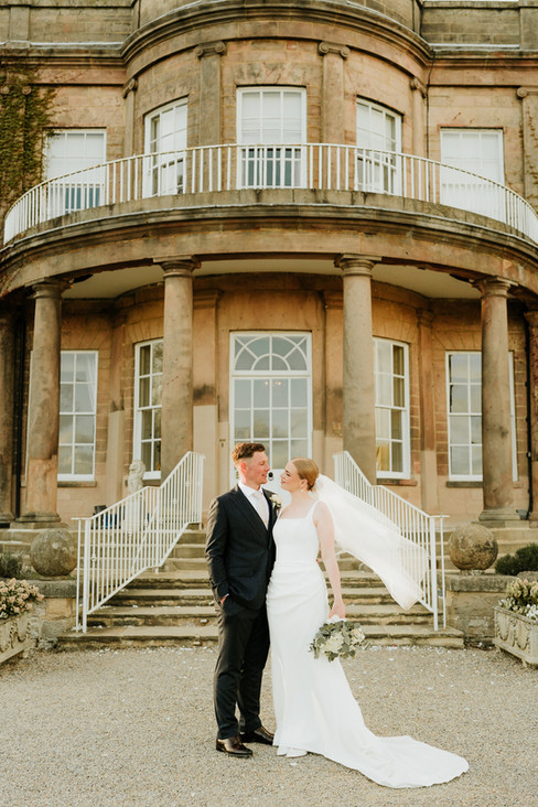The ceremony was beautiful, but the weather decided to test us with stop-start rain and some pretty gusty winds. We pivoted and moved the family photos inside, which was no problem at all given how gorgeous the interior is. The speeches were a massive highlight, especially Katy’s mum, who brought along props and gifts that had the whole room laughing. Luckily, the clouds cleared just in time for golden hour, and we managed to sneak onto the grounds for some gorgeous couple photos in the sun. The day ended with everyone hitting the dance floor to celebrate a truly great couple.